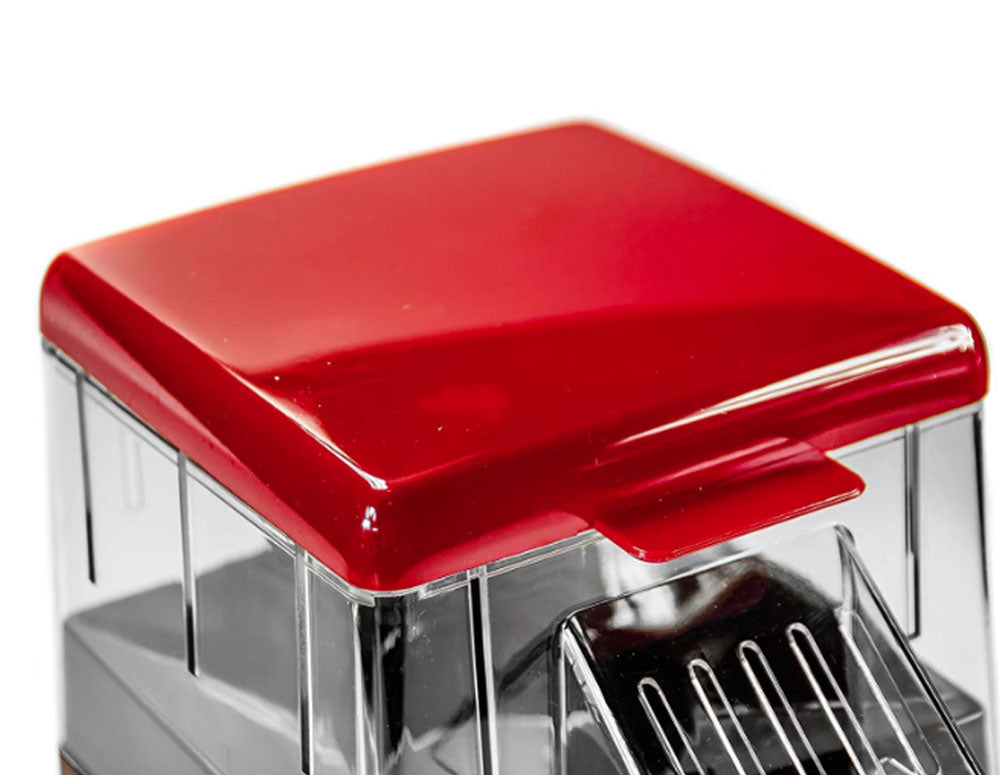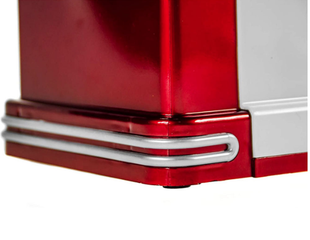 Aparatul de popcorn CAMRY CR 4480 este cea mai bună soluție dacă sunteți în căutarea unor electrocasnice elegante, care să arate bine pe blatul de bucătărie și care nu necesită a fi depozitate în dulapuri. Designul original și caracteristicile unice ale aparatului, care fac trimitere la stilul retro american pe care îl asociem cu cina anilor '50, vor încânta pe oricine apreciază decorațiunile originale! Calitatea înaltă a tuturor elementelor garantează o utilizare îndelungată a aparatului. Produsul este alcătuit dintr-un capac ușor detașabil, un corp transparent care facilitează controlul procesului de coacere, un jgheab, un element de încălzire și un buton pornit/oprit cu lampă de control, precum și protecție împotriva supraîncălzirii. Picioarele antiderapante din cauciuc împiedică deplasarea dispozitivului pe masă.