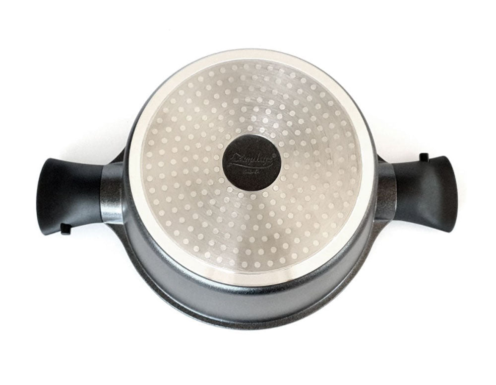 - Oală din aluminiu turnat/forjat de înaltă calitate, cu capac - construcție robustă și distribuție uniformă a căldurii pentru rezultate perfecte de gătit.