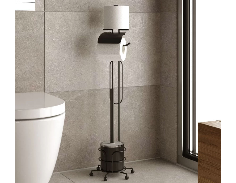 PERIE DE TOALETĂ CU SUPORT PENTRU HÂRTIE IGIENICĂ Negru