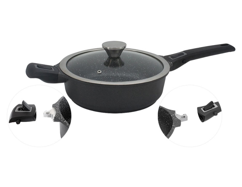 - Tigaie adâncă din aluminiu turnat de înaltă calitate, cu capac.
