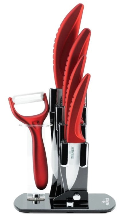 Set de cuțite cu suport ZILNER ZL 5123, 6 piese, Cuțit de curățat, Înveliș ceramic, Roșu