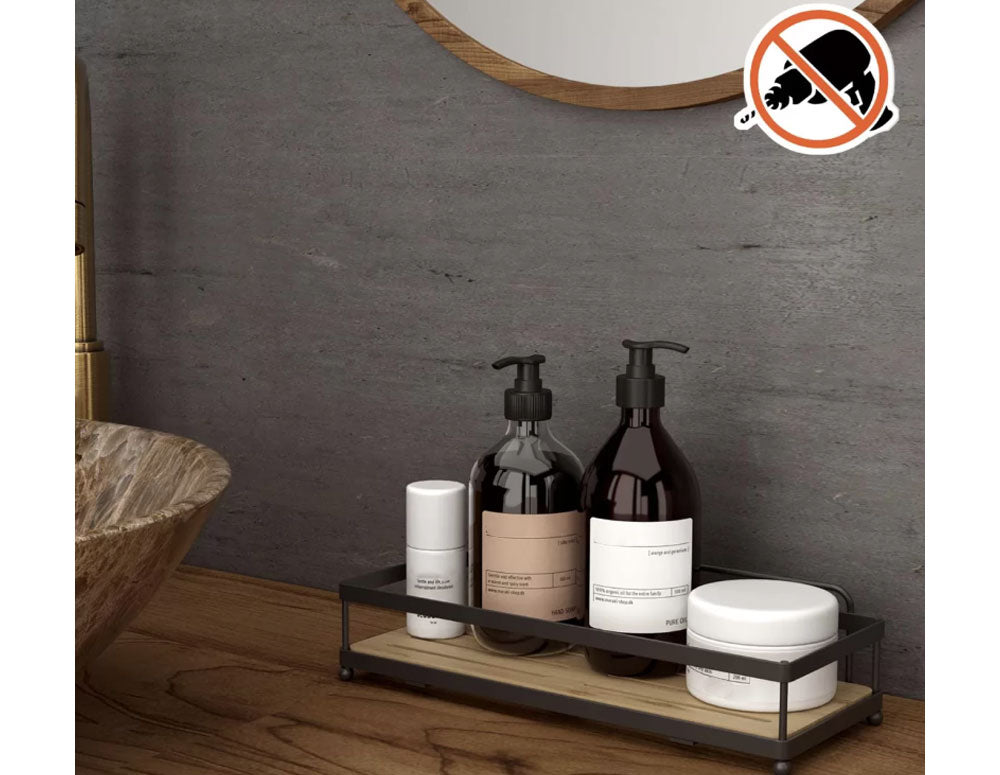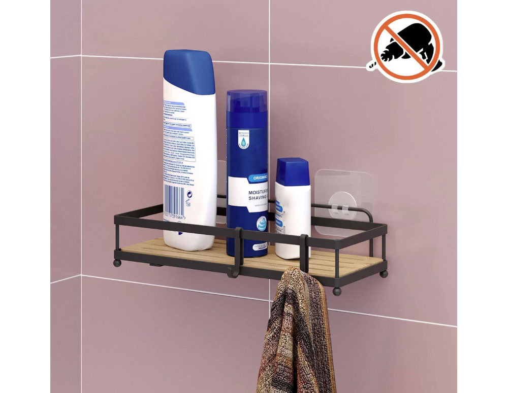 Raft de baie cu 1 nivel, cu bandă dublu adezivă - negru