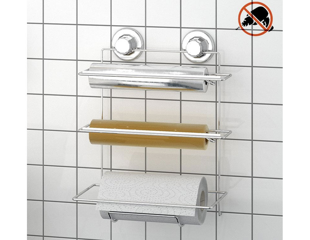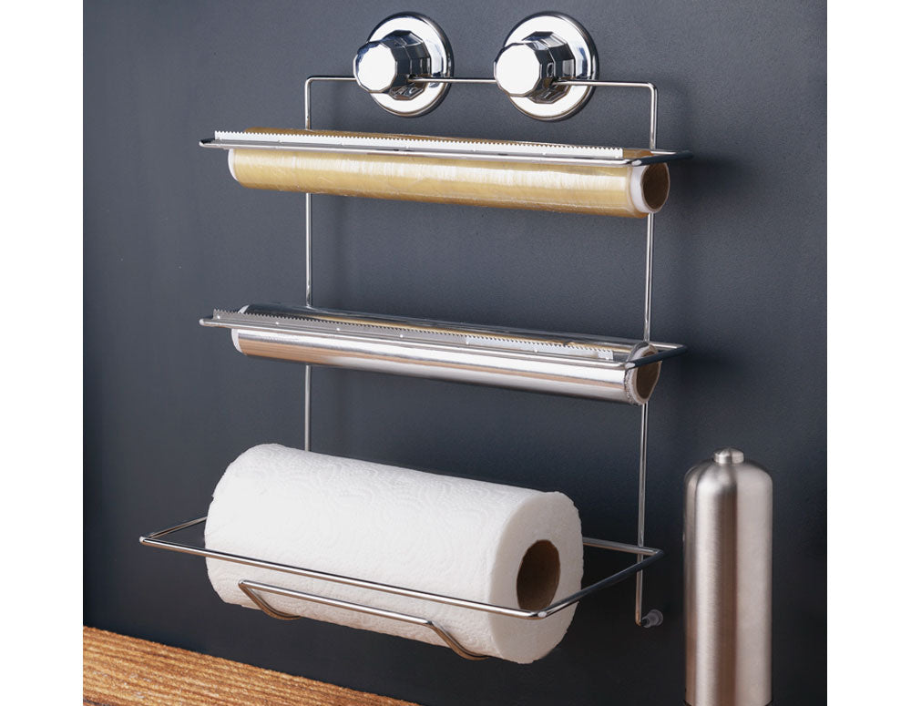Suport pentru rulou de aluat, folie și hârtie de copt - prindere adezivă cromată