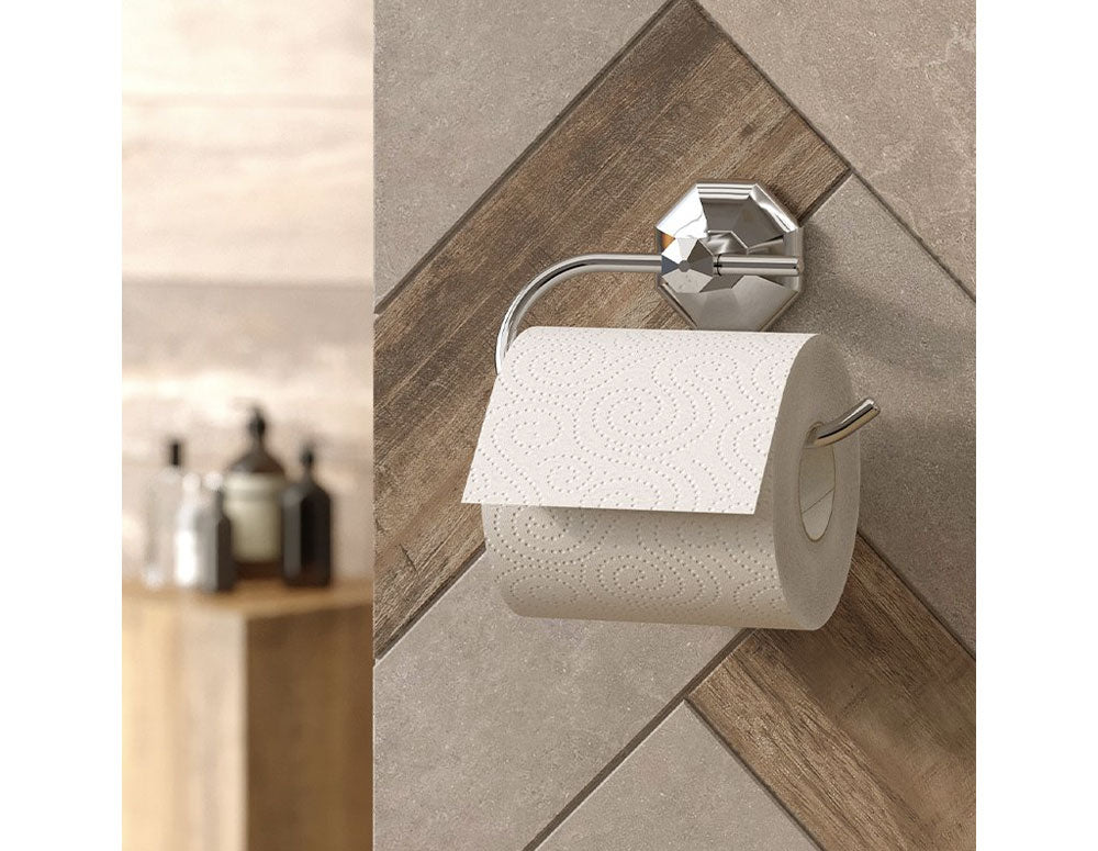 Suportul pentru hârtie are un design curat și se va potrivi în interiorul oricărei camere umede. Datorită pietrei încorporate, suportul emană o eleganță rar întâlnită la acest tip de accesoriu de baie.