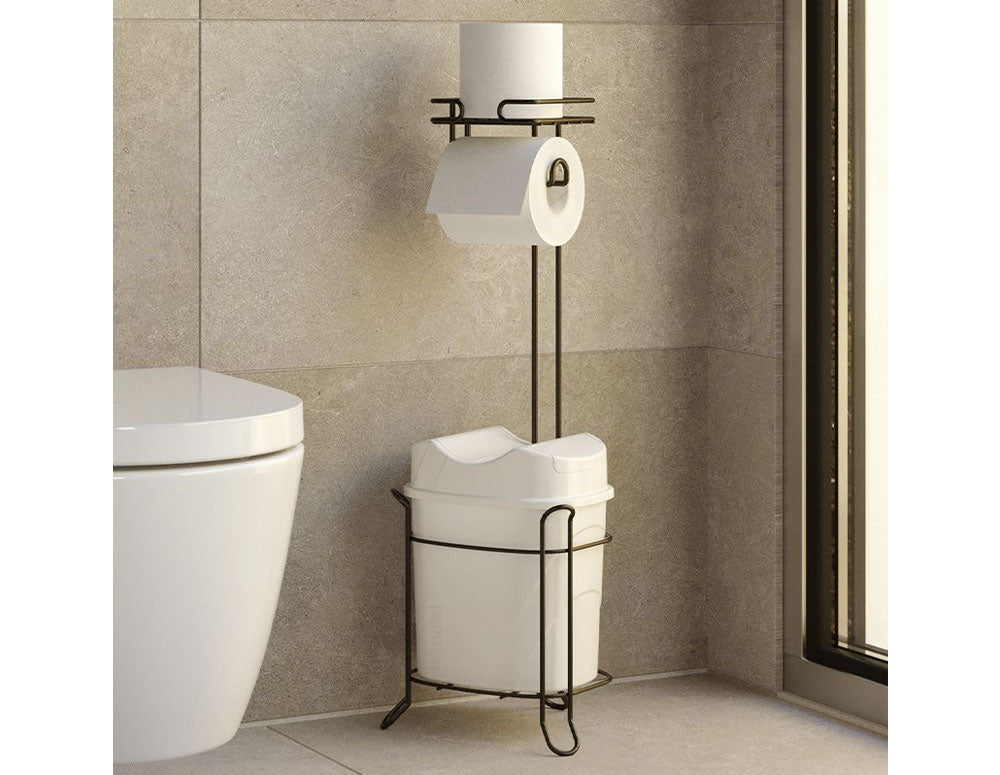 Suport de hârtie igienică cu coș de gunoi - alb-negru 25x20x58