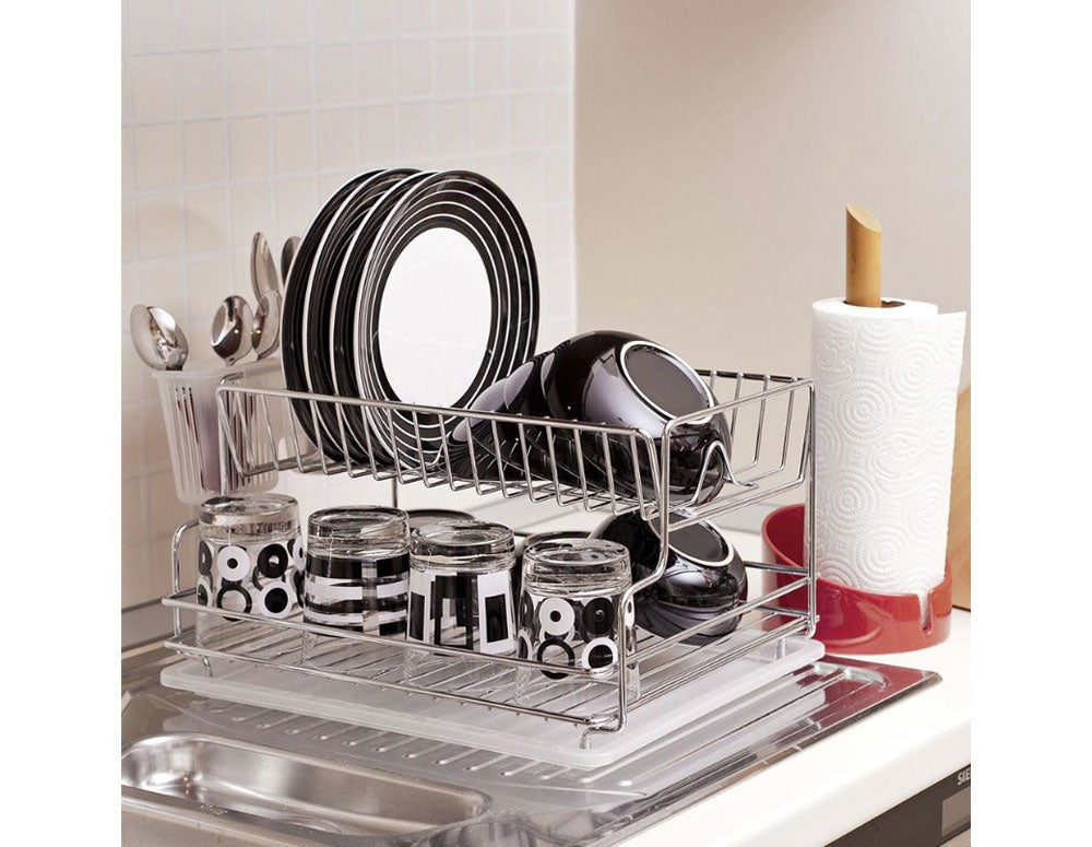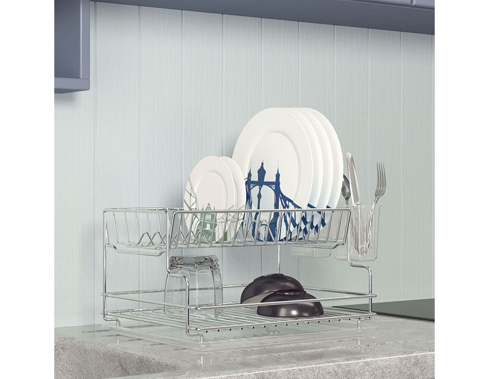 Accesoriu de bucătărie practic, compact și convenabil pentru scurgerea vaselor. Primul nivel este potrivit pentru pahare și boluri, iar al doilea pentru farfurii.