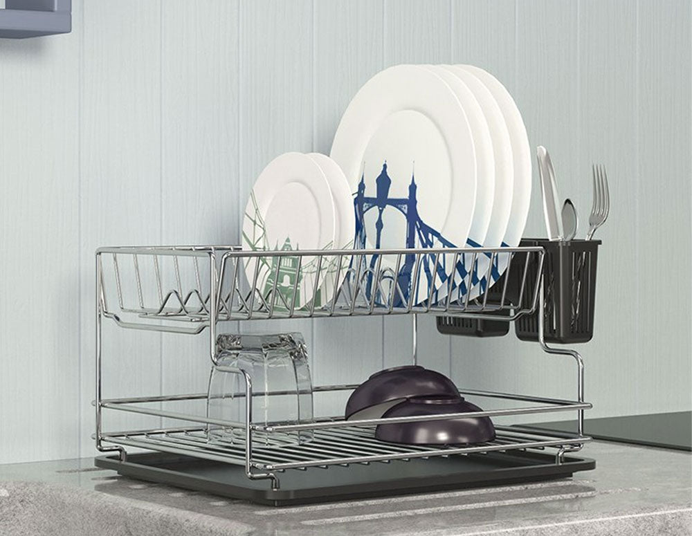 USCĂTOR DE VASE TEKNO TEL KB-005BP, 2 niveluri, crom-negru, 42 x 30 x 21 cm