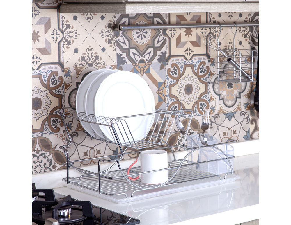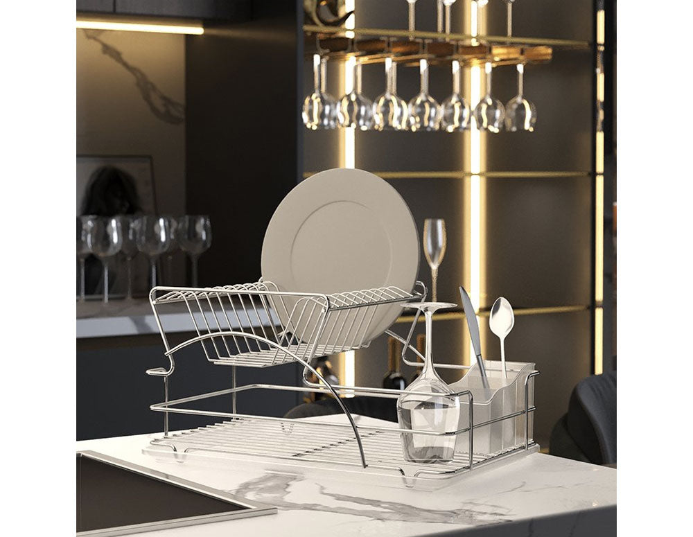 Accesoriu de bucătărie practic, compact și convenabil pentru scurgerea vaselor. Primul nivel este potrivit pentru pahare și boluri, iar al doilea pentru farfurii.