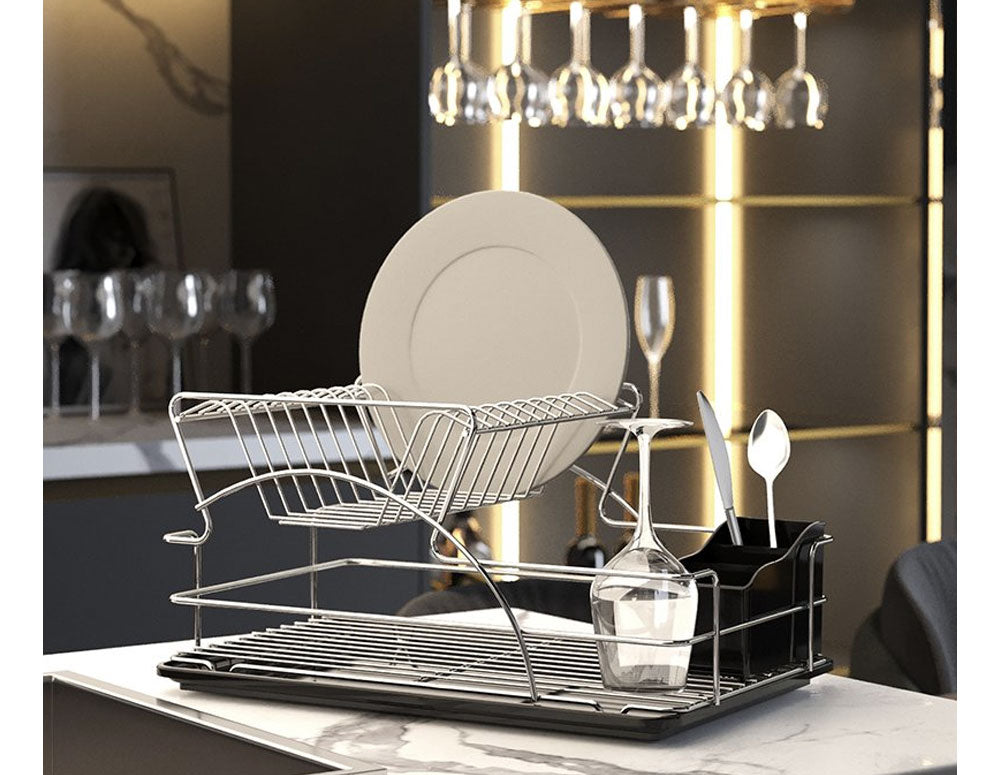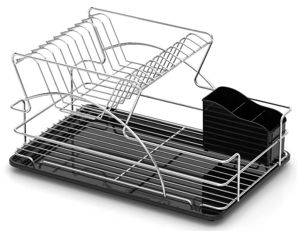 USCĂTOR DE VASE cu 2 niveluri, tavă cromată-neagră 48x33x25