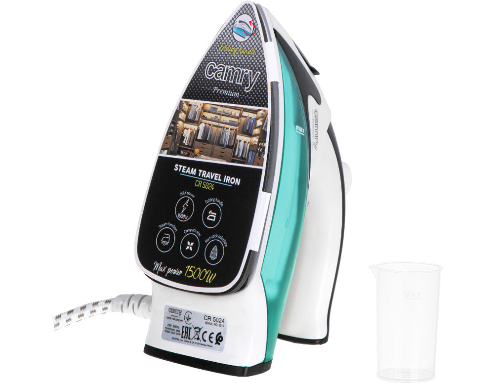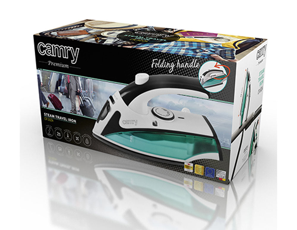 Fier de călcat de călătorie cu o putere maximă de 1500 W, perfect pentru călătorii. Este conceput pentru persoanele cărora le pasă să arate elegant chiar și în locuri unde nu există un fier de călcat. Datorită dimensiunilor reduse și mânerului pliabil, încape cu ușurință în orice bagaj. Este ușor de utilizat și extrem de ușor (doar 0,6 kg). Permite reglarea rapidă a temperaturii. Marcajele de pe buton permit reglarea temperaturii în funcție de tipul de material care se călcă. Aceasta este o caracteristică foarte convenabilă atunci când persoana care lucrează cu acest fier de călcat nu calcă des.