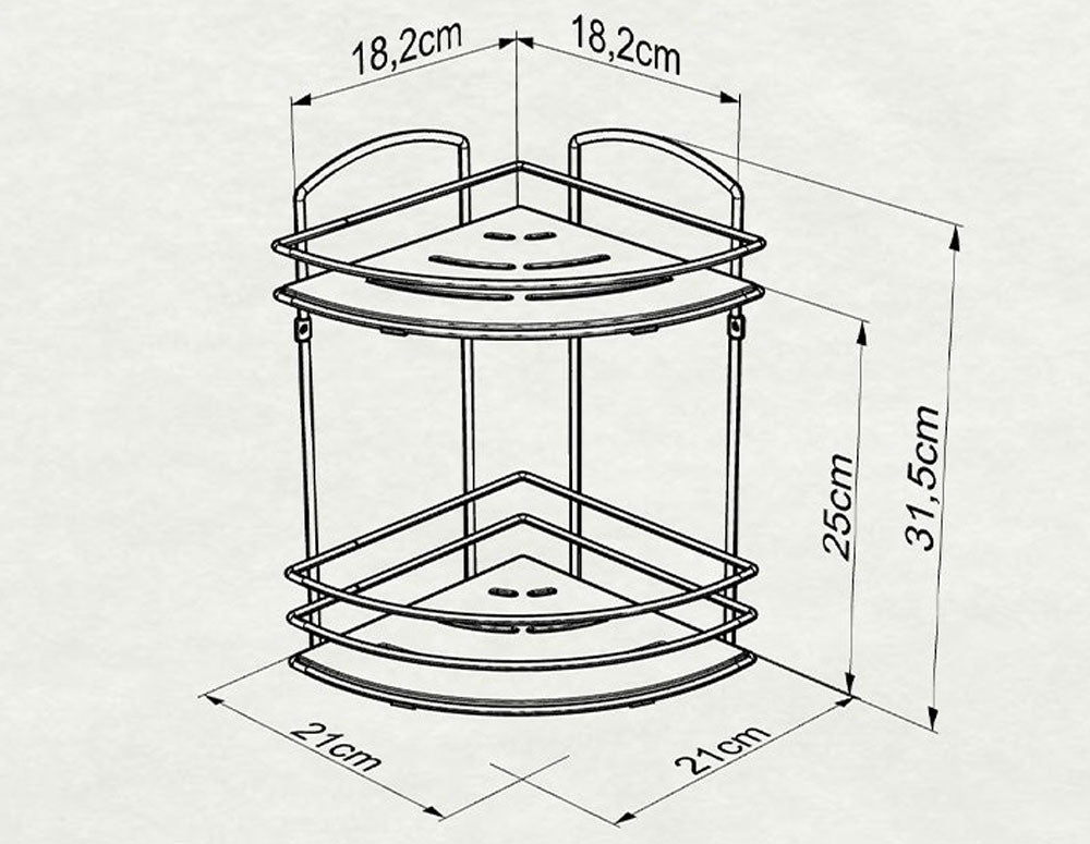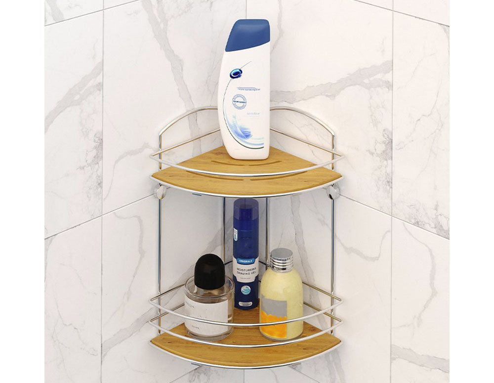 Raft de colț pentru baie cu 2 niveluri - lemn - crom 24x24x31