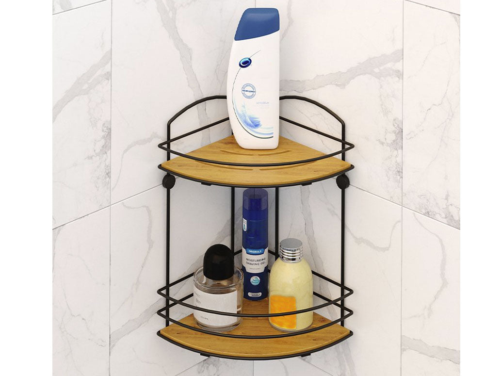 Raft de colț pentru baie cu 2 niveluri - lemn - negru 24x24x31