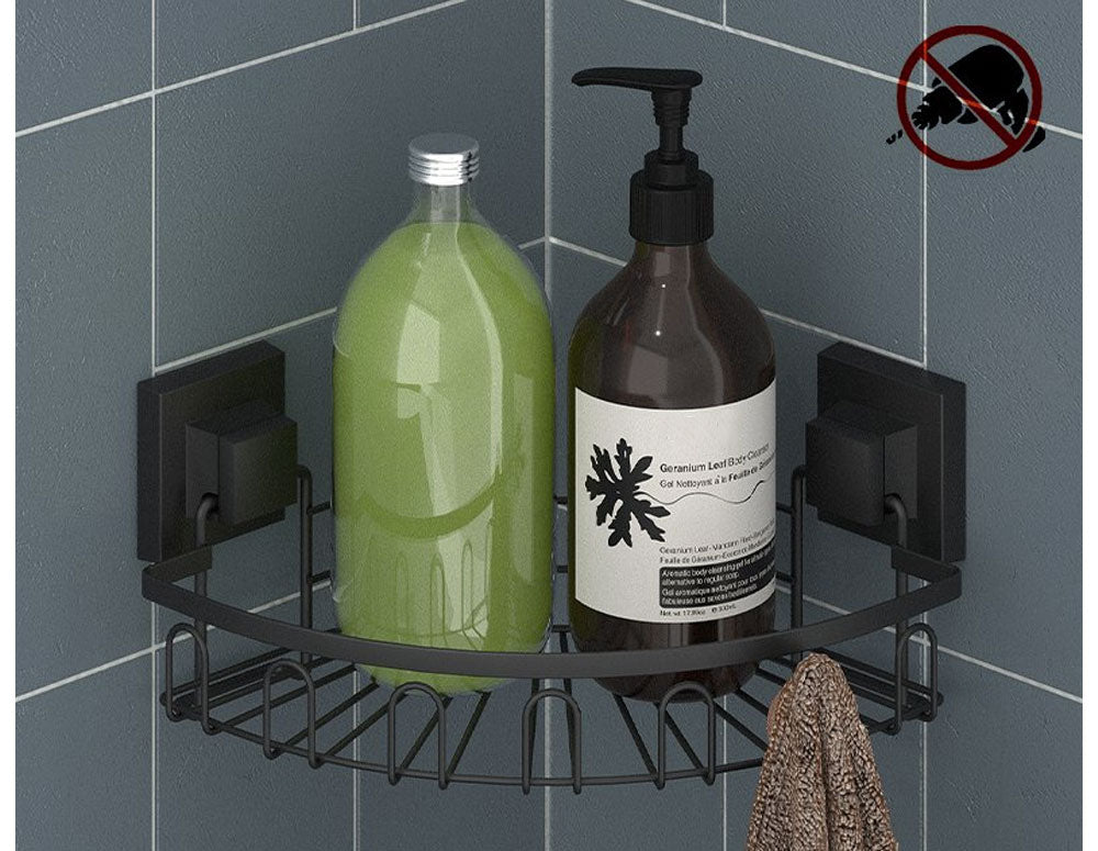 Raft de colț pentru baie pe un singur nivel, Adeziv față-verso, Negru